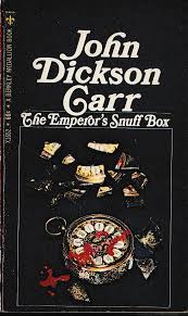 In the opening chapter of John Dickson Carr’s The Emperor’s Snuff Box, we meet the two main characters in the middle of divorce proceedings. Eve Neill is the aggrieved spouse. She’s an intelligent woman who nevertheless allows herself to get mixed up with jerks. Men tell her what to think, what to feel, and (on occasion) what to notice. Her soon-to-be ex, Ned Atwood is the controlling type. After cheating on her and committing abuse both mental and physical, he has the temerity to believe she still loves him. Unfortunately for her, he may be right.