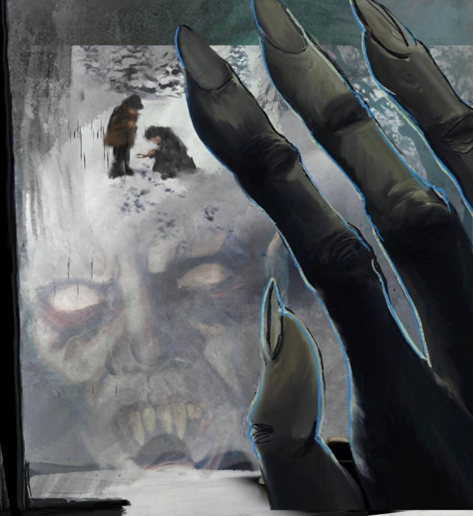 Matt wanted to move in closer. I agreed. The hand and face make better sense and the detectives are bigger. The room needs more shadow to contrast with the snow, but I like the positioning and the perspective. He’ll paint it soon, and I’m dying to see how it’ll look.